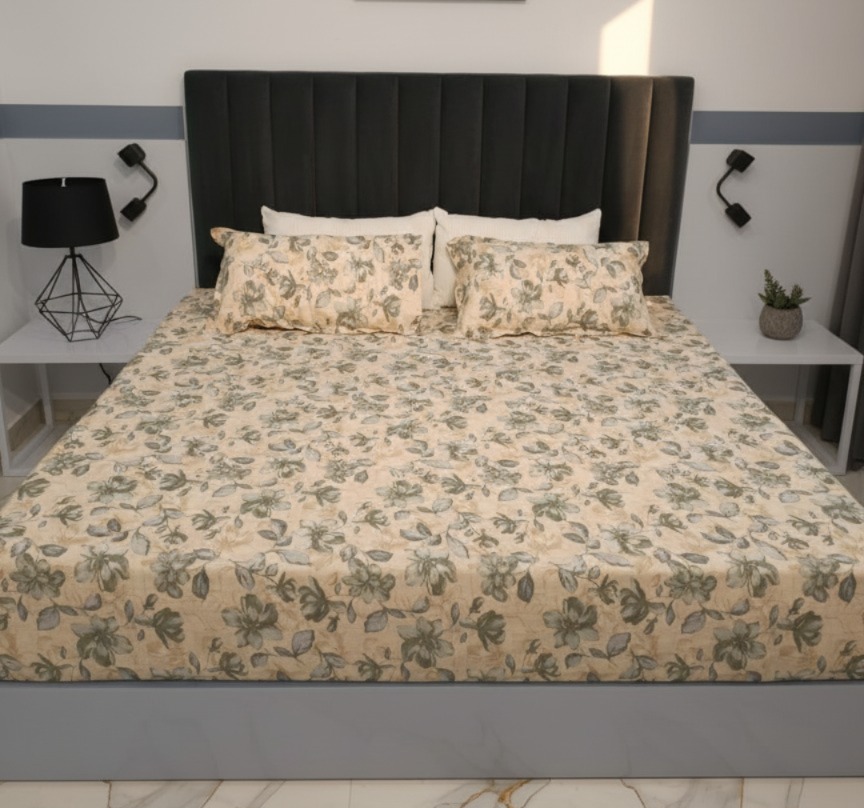 Bring timeless elegance to your bedroom with the Velora Creta Queen Size Bedsheet Set. Crafted from premium quality fabric, this bedsheet combines comfort, durability, and sophisticated design. The subtle floral print in soothing tones adds a touch of natural charm, making it perfect for both modern and classic interiors. Designed to offer a soft, smooth feel against the skin, Creta ensures restful sleep while enhancing the overall aesthetic of your space.